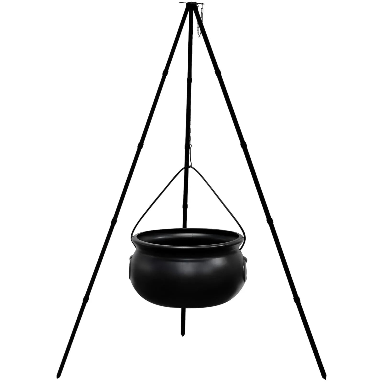Create a chillingly festive atmosphere this Halloween with this large outdoor witch cauldron on a tripod. Equipped with built-in lights and a candy bucket, it’s perfect for Halloween bonfires, horror-themed parties, or carnival decorations. Durable and eye-catching, it adds spooky charm and interactive fun to your outdoor celebrations.