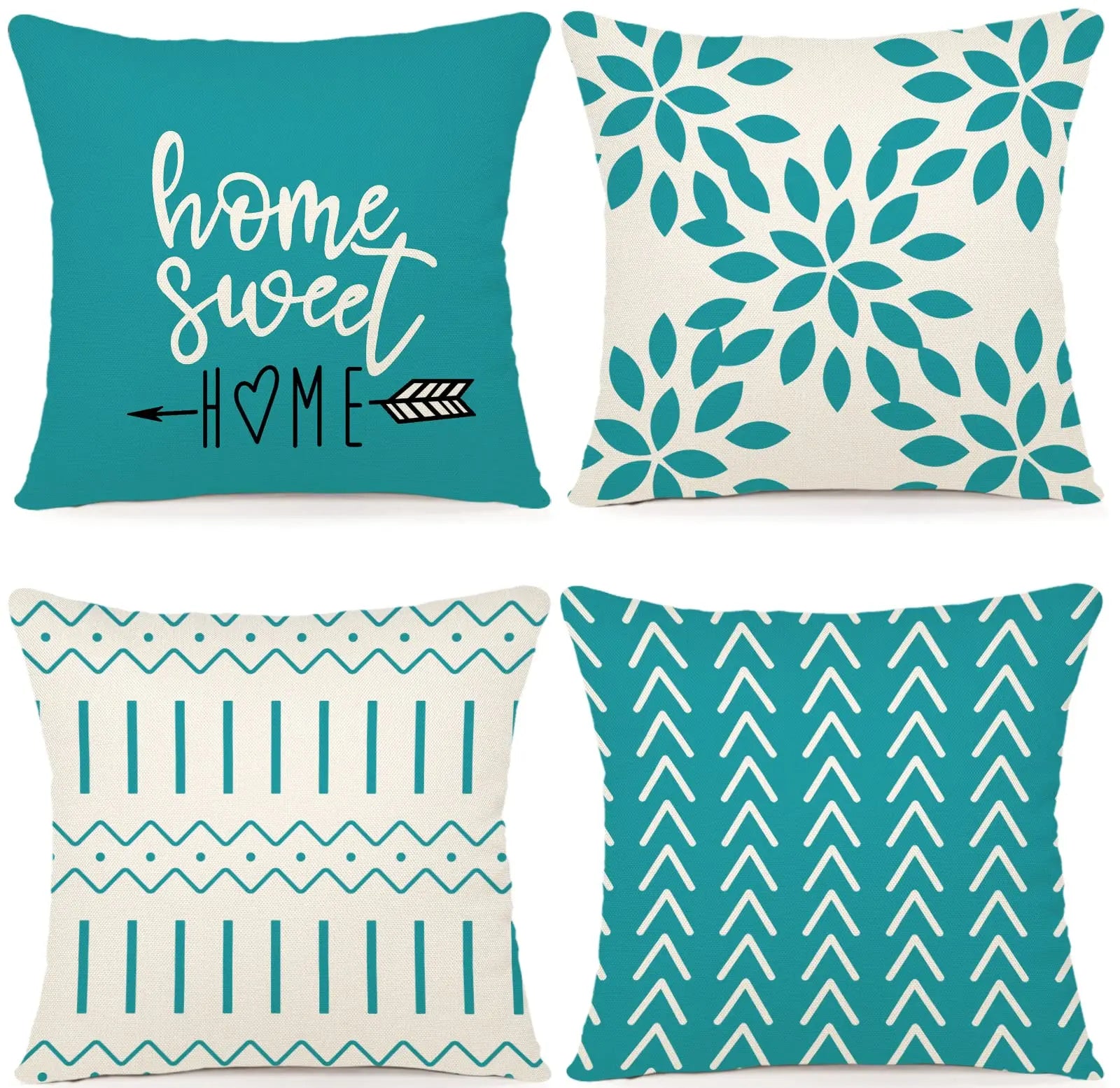 18x18in Decorative Pillow Covers – Set of 4 – made from linen fabric with modern geometric and artistic patterns. Ideal for sofa, bed, or outdoor furniture, combining style, durability, and home décor versatility.